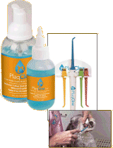 A PlaqClnz gel can be used at home daily. It is easily applied, no brushing required; it is taste-free and readily accepted by your pet.